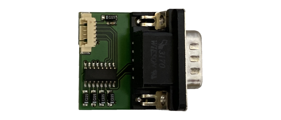 Die Baugruppe RS-232 ist optimal auf die Baugruppen OSDxs/xsc/xxs abgestimmt und bietet einen normgerechten COM-Port RS-232 zur Verbindung mit Computern. Hierzu ist im OSD die Schnittstelle freizuschalten. Der OSD ist vollständig über die Schnittstelle steuer- und konfigurierbar. Die Baugruppe ist für eine Frontplattenmontage mit D-Sub 9polig M vorgesehen. Zur Verbindung mit dem PC genügt ein Null-Modem-Kabel (TxD/RxD und CTS/RTS). Auch die Nachrüstung und Freischaltung älterer OSD ist möglich.